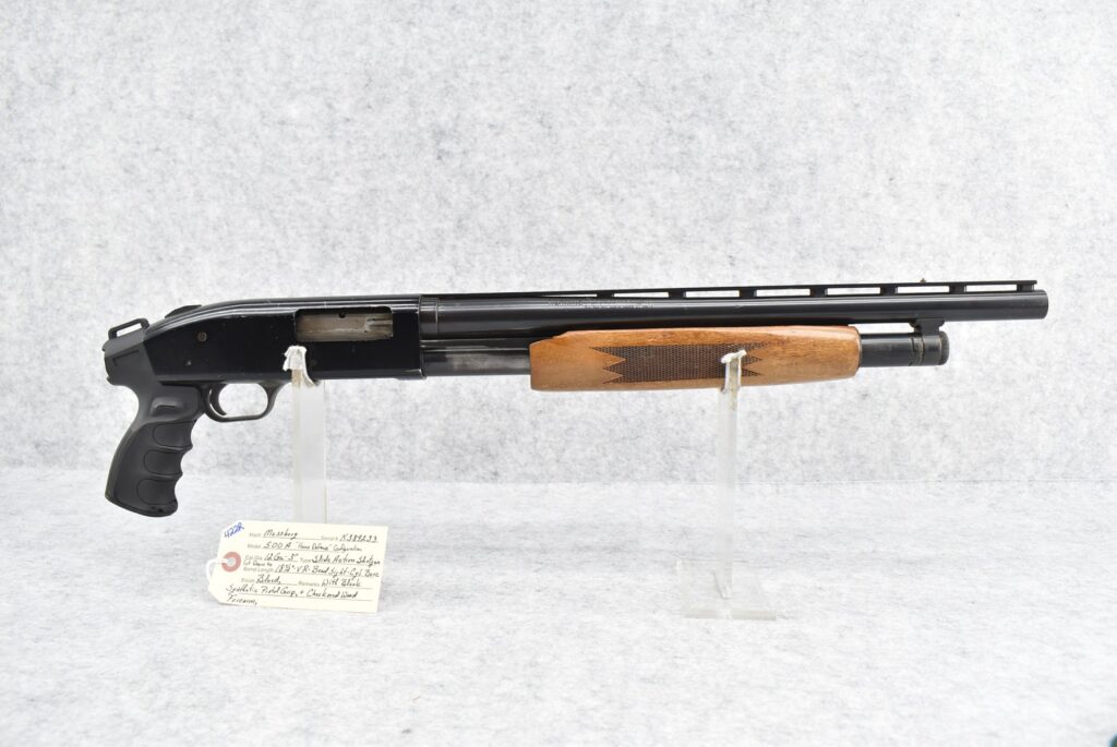 422R. Mossberg – Mod. 500A “Home Defense” – 12ga. 3” Pump Action Shotgun – Cut Down to 18½” Vent Rib...