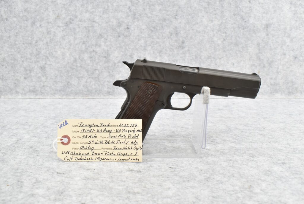 400R.     Remington-Rand – Mod. 1911-A1-US Army – US Property Marked – 45 Auto Cal. Semi-Auto Pistol – w/5” Barrel w/Blade...