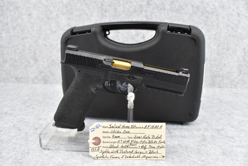 24R. Salient Arms International – Mod. Strike One – 9mm Cal. Semi-Auto Pistol – w/5” Barrel w/Fiber Optic Blade Front...