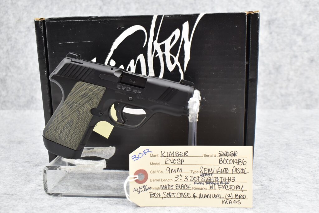 30R. Kimber – Mod. EVOSP – 9mm Cal. Semi-Auto Pistol – w/3” Barrel w/3-Dot Night Sights – Matte Black Finish...
