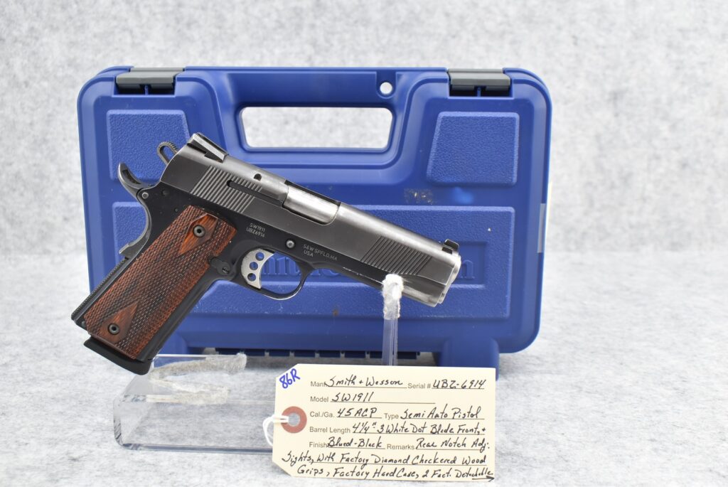 86R. Smith & Wesson – Mod. SW1911 – 45 ACP Cal. Semi-Auto Pistol – w/4 ¼” Barrel w/3 White Dot...