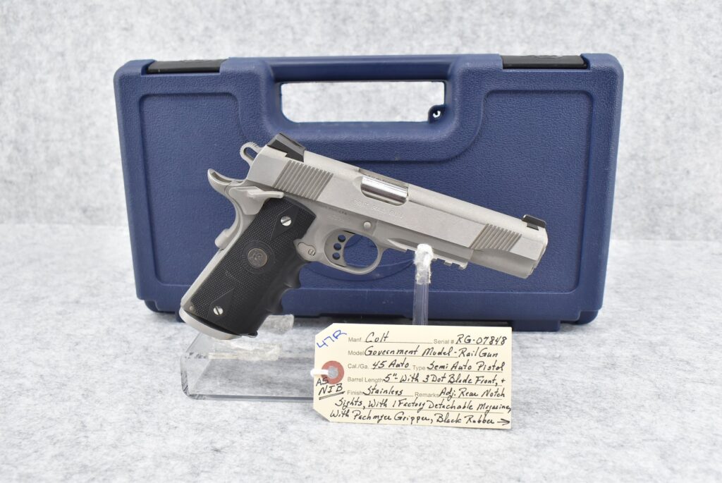 47R. Colt – Government Model-Rail Gun – 45 Auto Cal. Semi-Auto Pistol – w/5” Barrel w/3-Dot Blade Front & Adj....