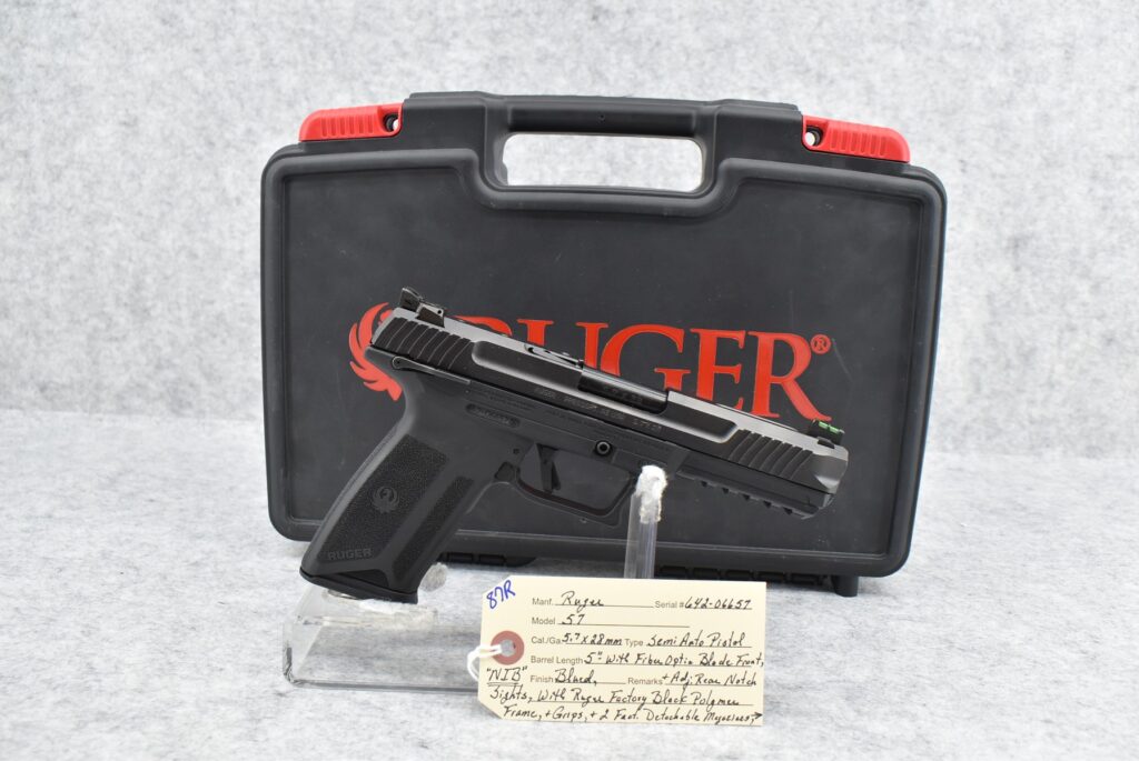 87R. Ruger – Mod. 57 – 5.7x28mm Cal. Semi-Auto Pistol – w/5” Barrel w/Fiber Optic Blade Front & Adj. Rear...