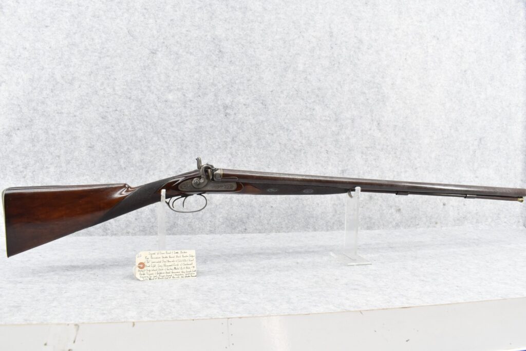 46. Signed William Read & Sons, Boston – 8ga. Percussion Double Barrel Black Powder Shotgun – w/32” Laminated Steel Solid...