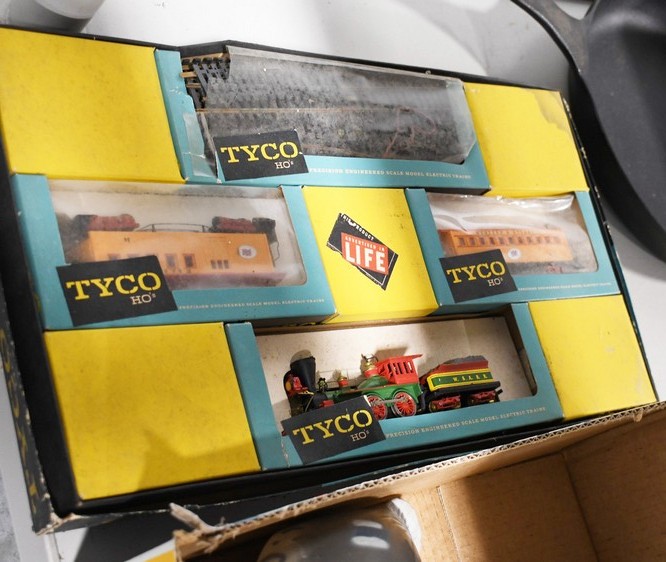 Collectible Toys and Trains: Vintage Childs Toys, Cap Guns, Diecast Toy Cars and Trucks, Truck Banks, Train Sets, Train Engines, Tenders, and Cars, Train Layout Accessories, Train Track, and Other