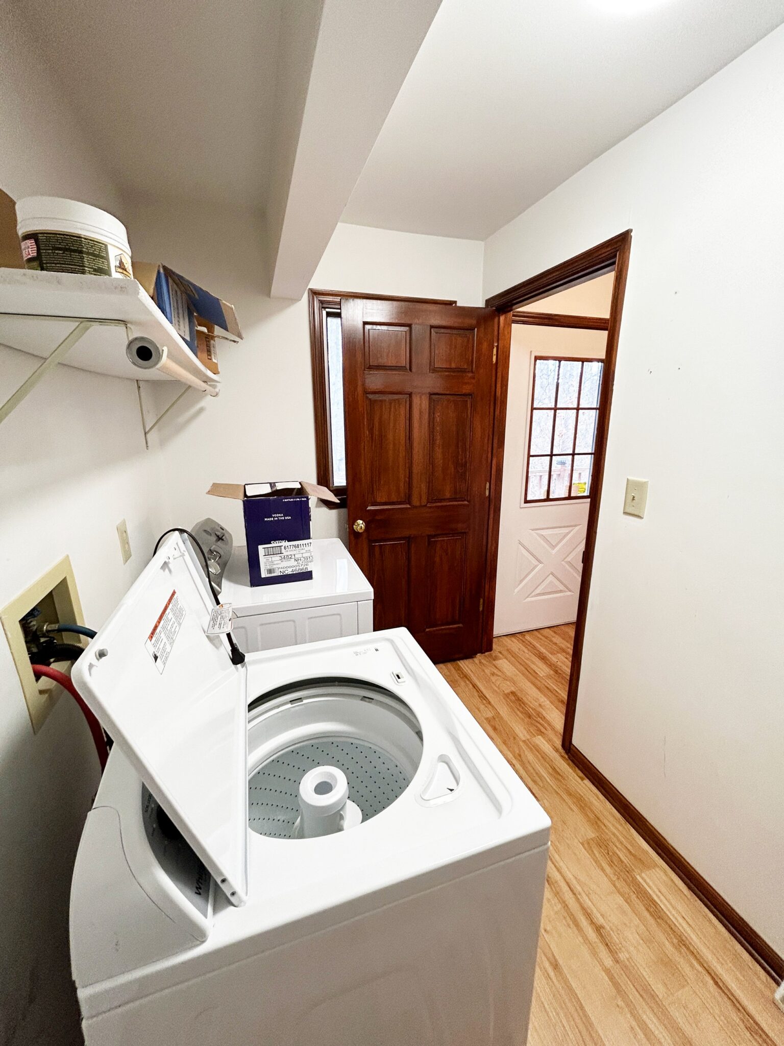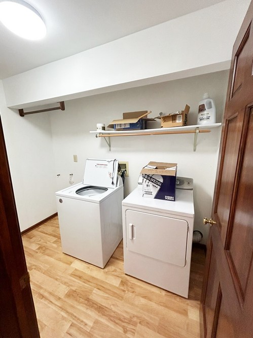 - Washer & Dryer Room: 9’x6’ – Laminate Flooring, GE Dryer, Whirlpool Washer, Built in Shelf. Access to Hallway & Side Entrance Way.
