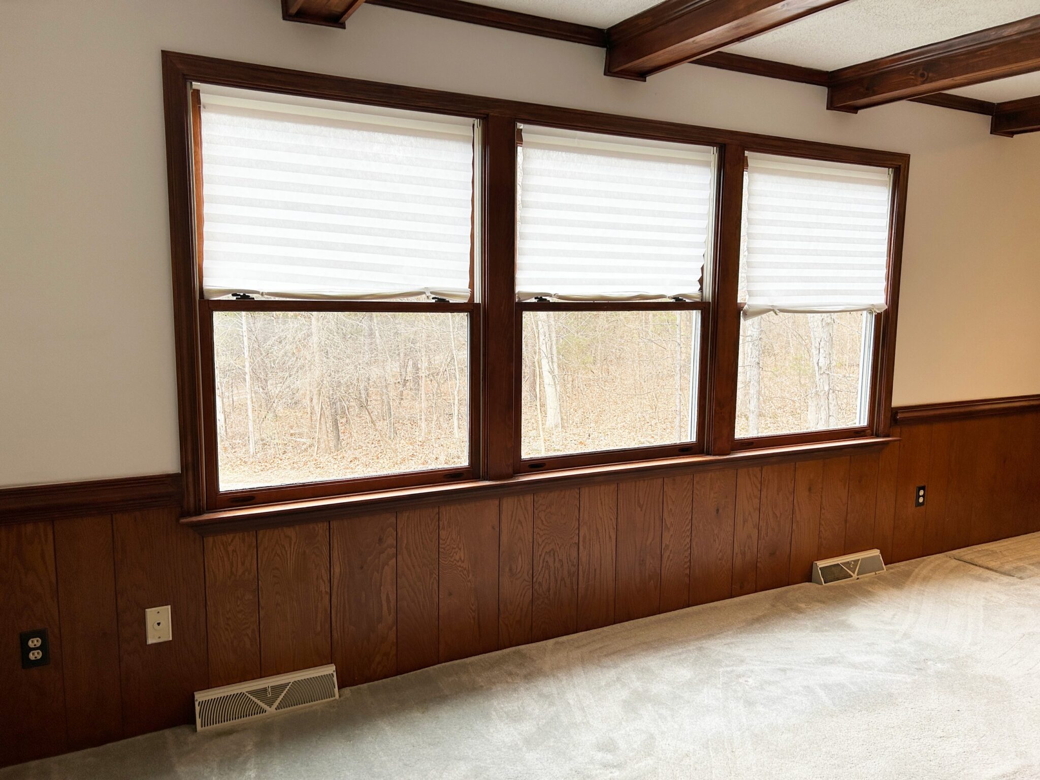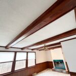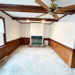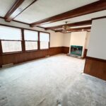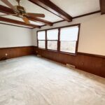 - Living Room: 21’x13’ – Carpet Flooring, Beamed Ceiling Accents, Fireplace, Windows, Ceiling Fan.