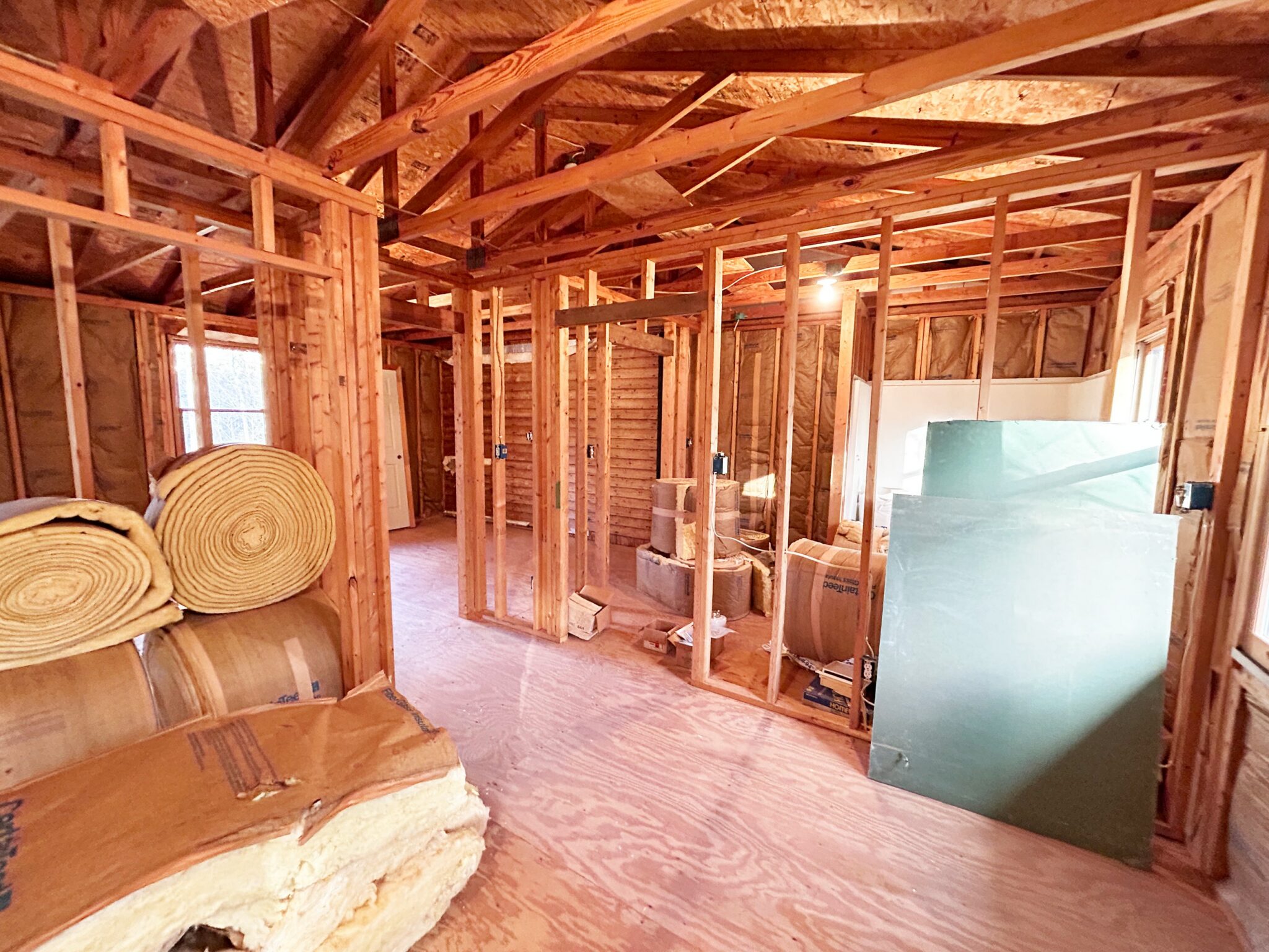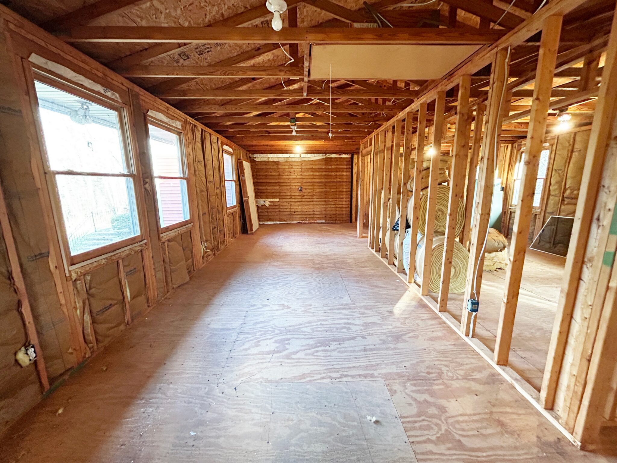 - Unfinished 2nd Floor Apartment: 40’x23’ – Plywood Floor, Studded out for bathroom, Kitchen, Bedroom and Family Room.