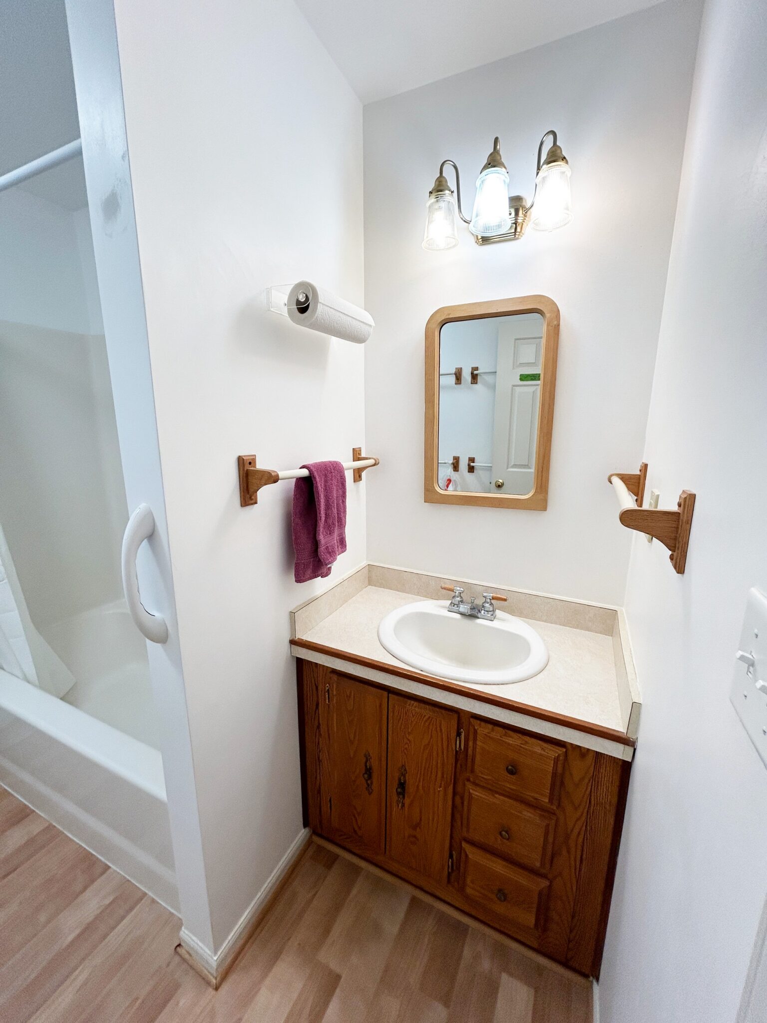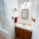 - Full Bathroom: 8’x7’ – Laminate Flooring, Single Sink Vanity, Step in Shower, Window.