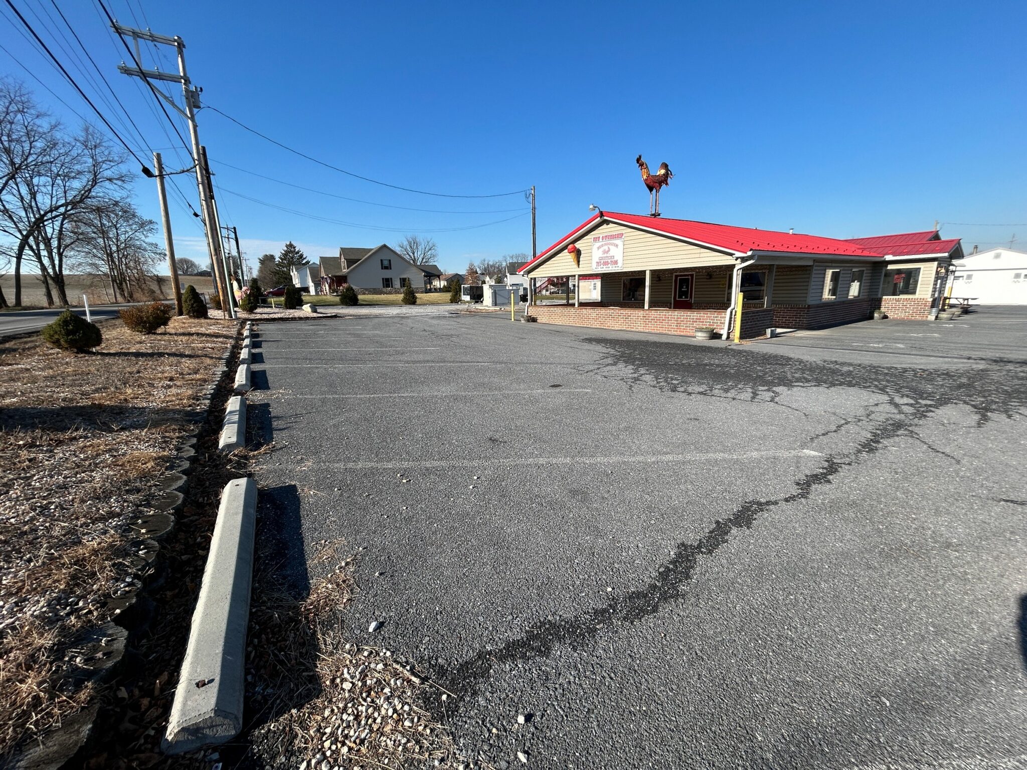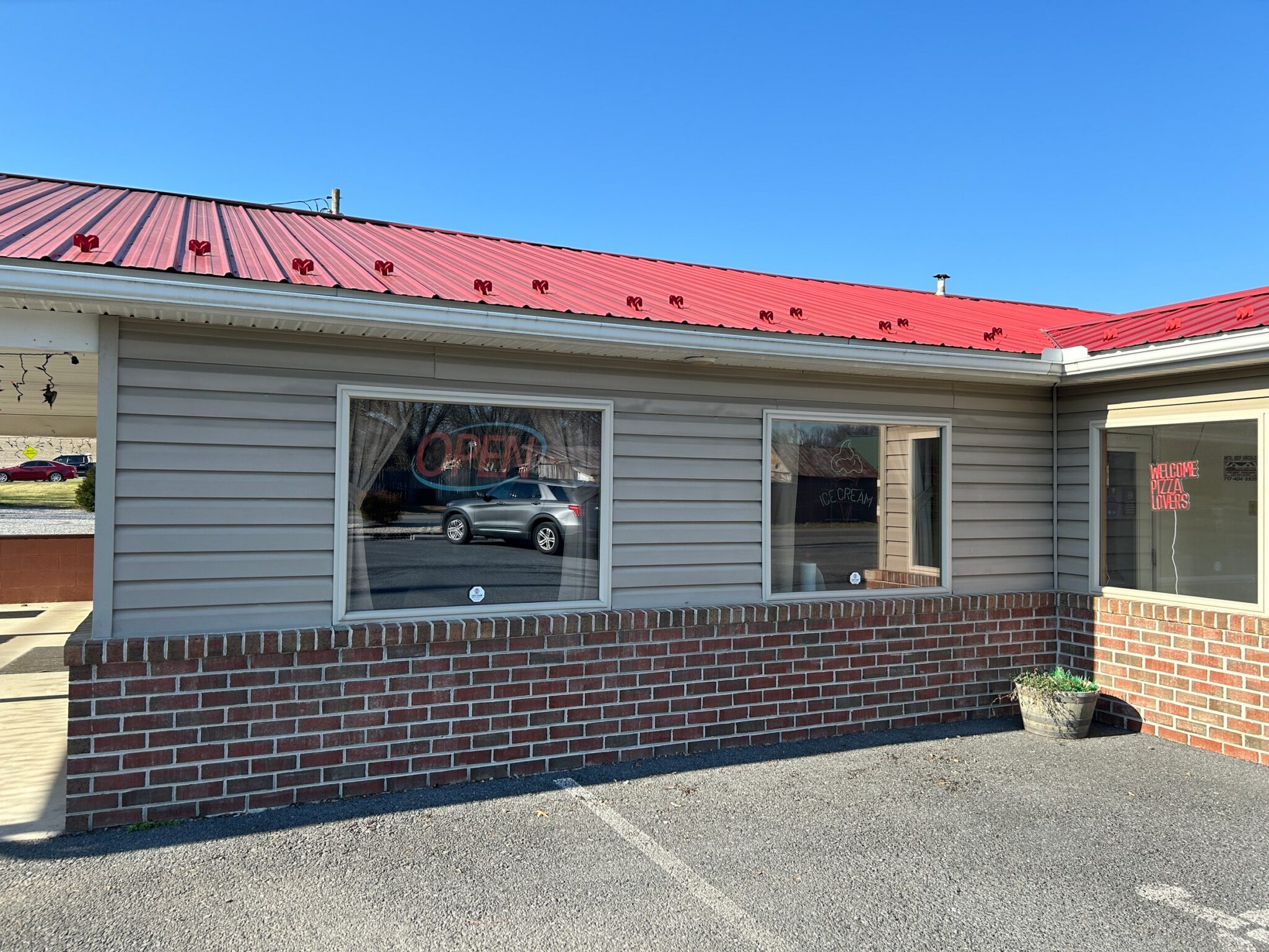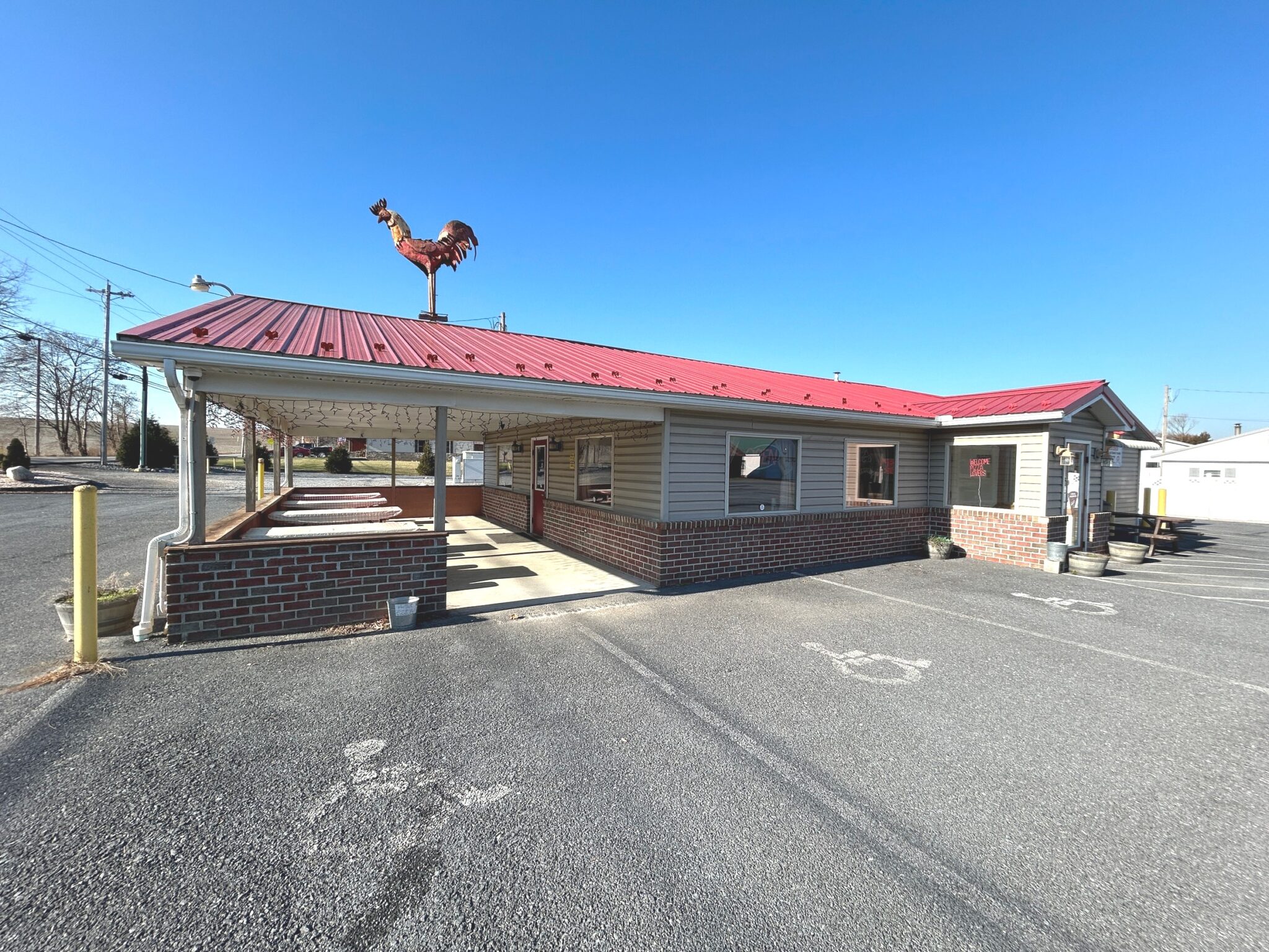 - Restaurant: 55’x32’ – *New Metal Roof, Vinyl Siding, Side & Rear Pick-up Windows for Easy Take-Out Service.