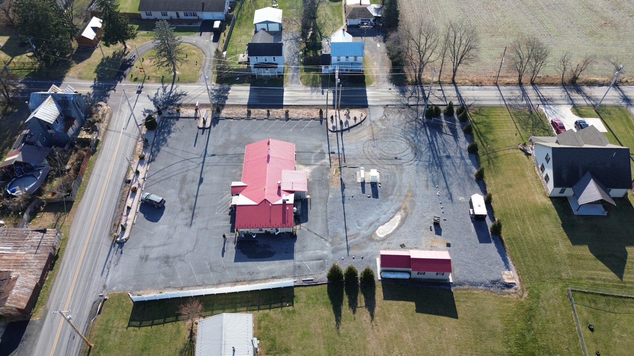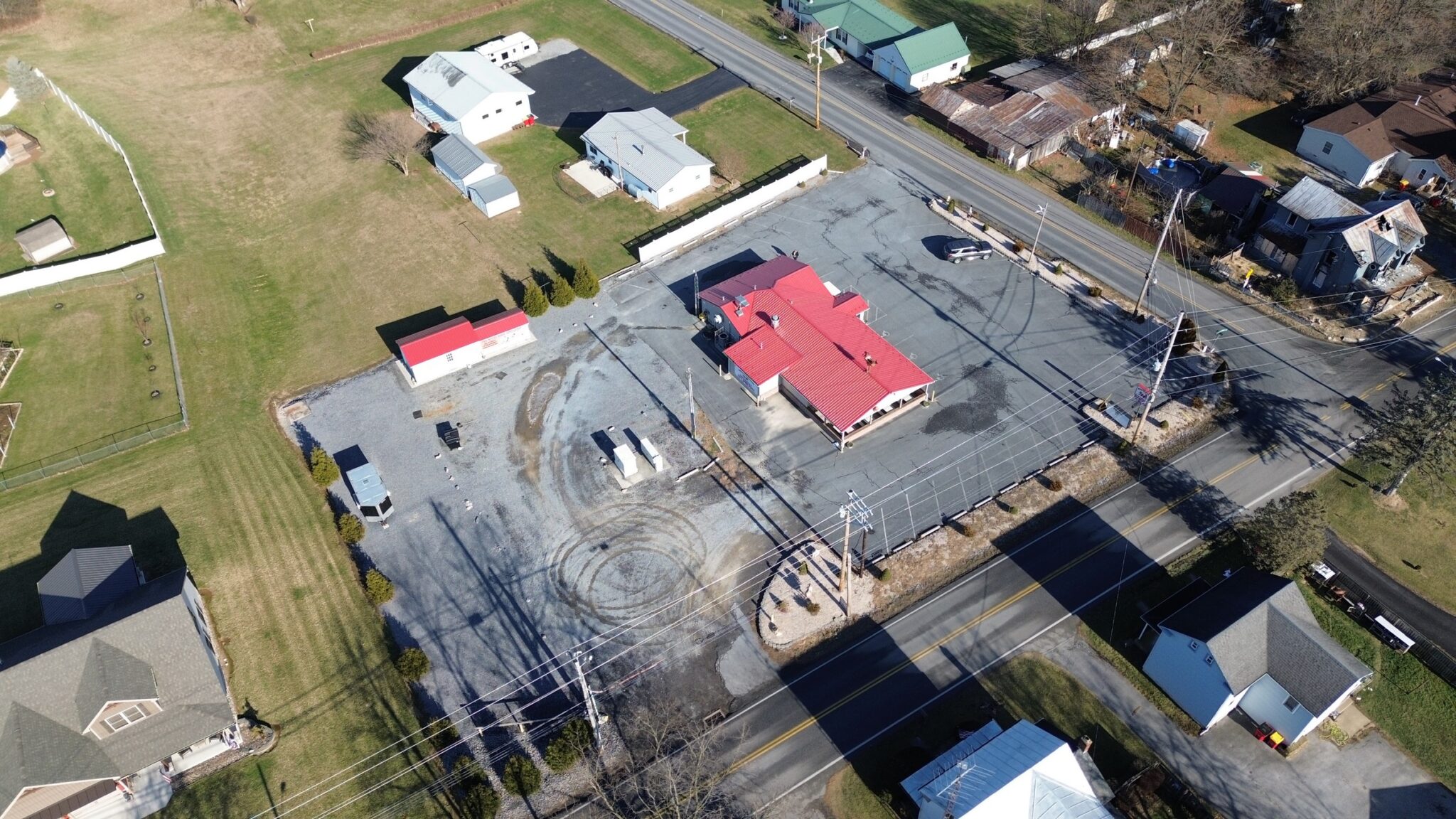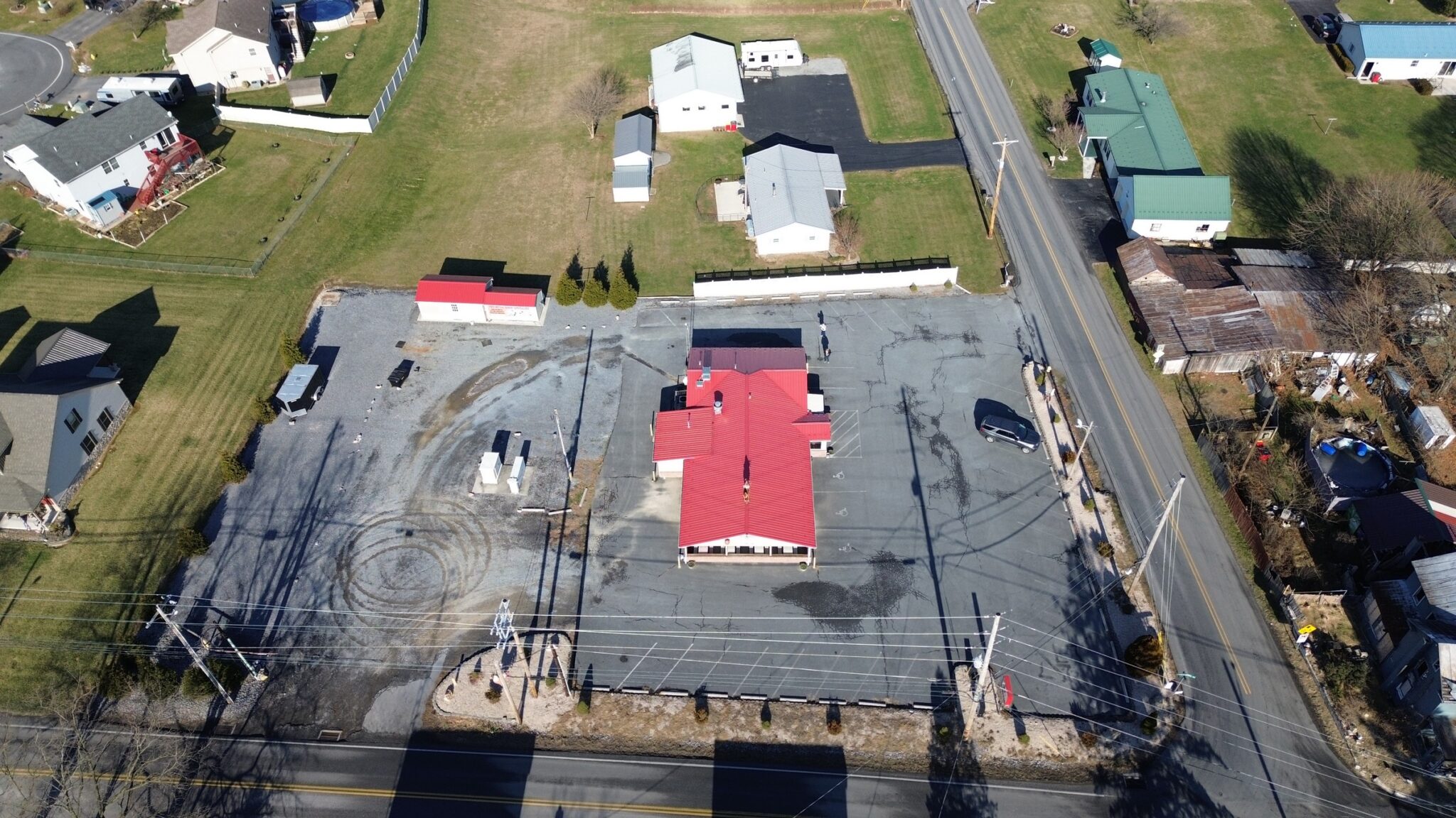 - Restaurant: 55’x32’ – *New Metal Roof, Vinyl Siding, Side & Rear Pick-up Windows for Easy Take-Out Service.