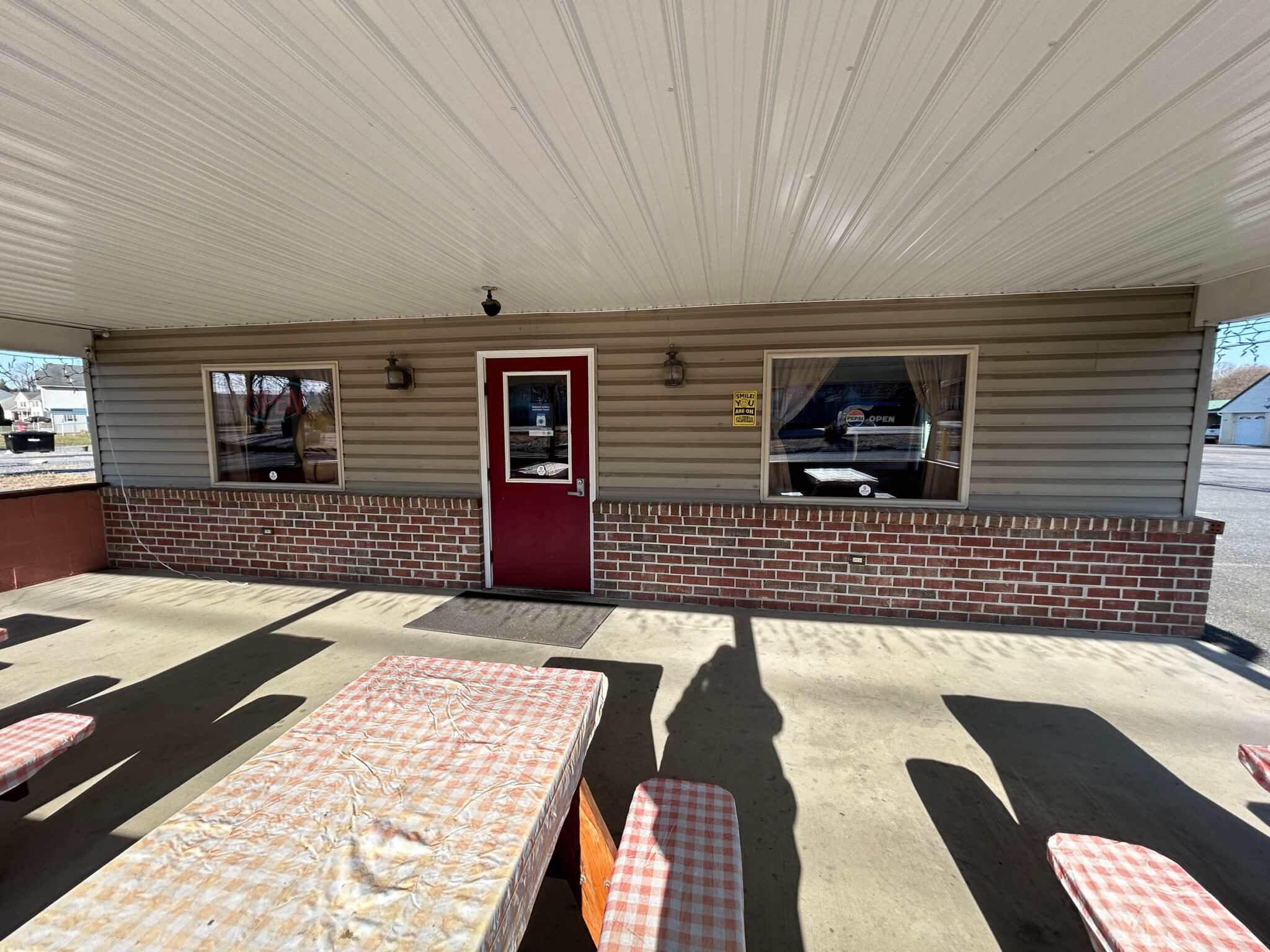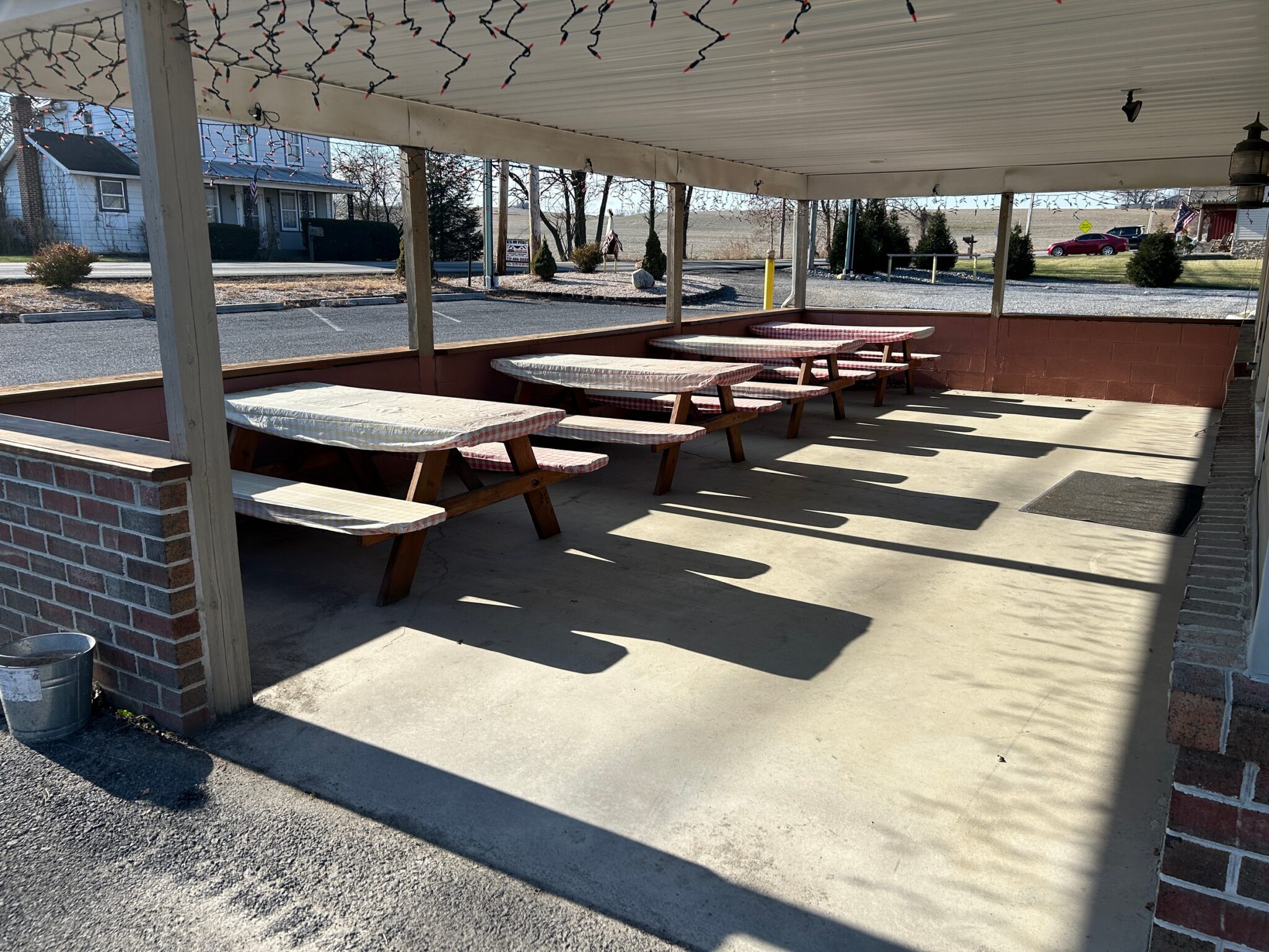 - Covered Patio: 30’x16’ – Concrete Floor, (4) Picnic Tables, Entrance to Parking Lot & Dining Room.