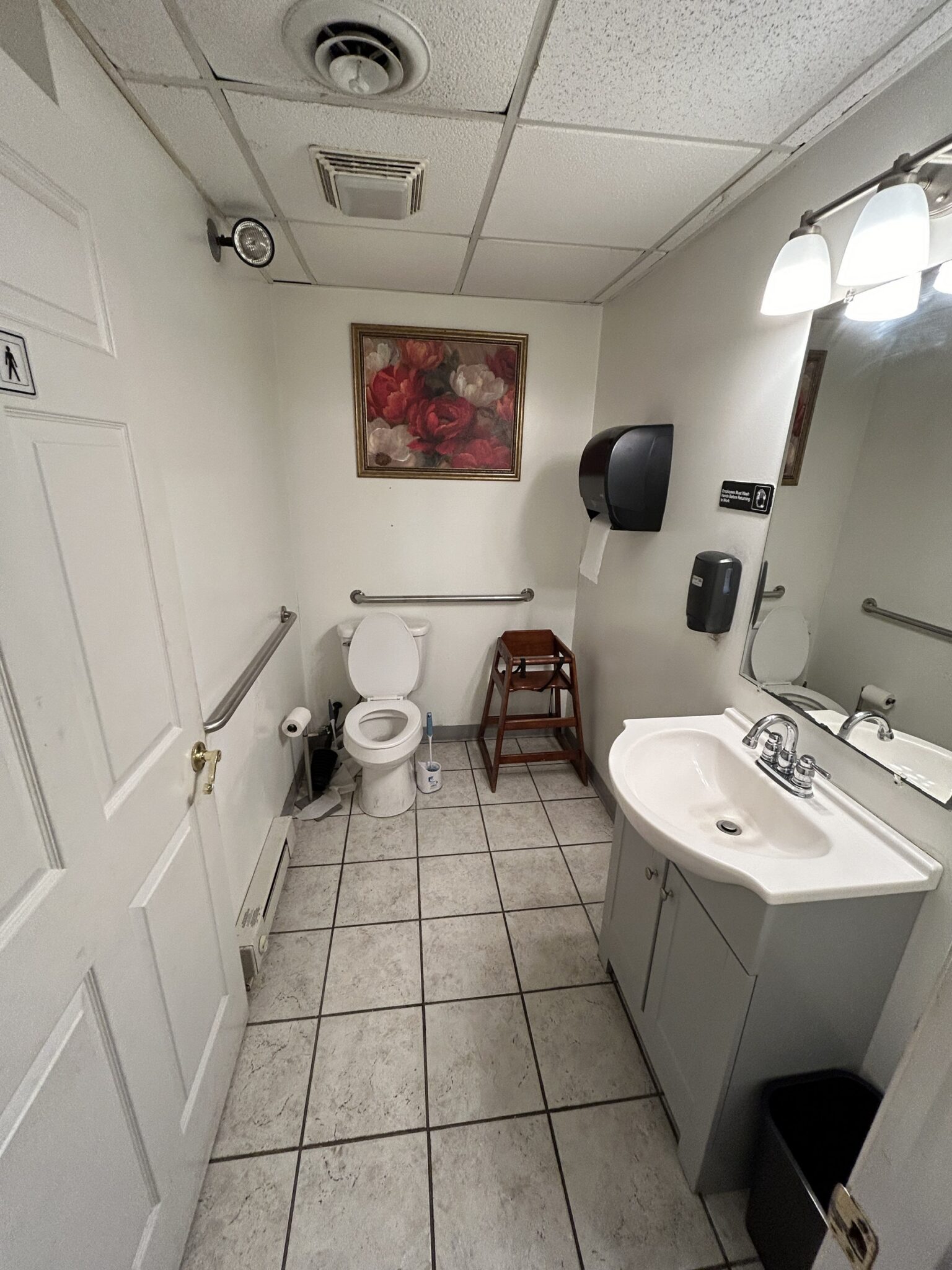 - Men’s Rest Room: 5’x8’ – Tile Flooring, Single Sink Vanity.