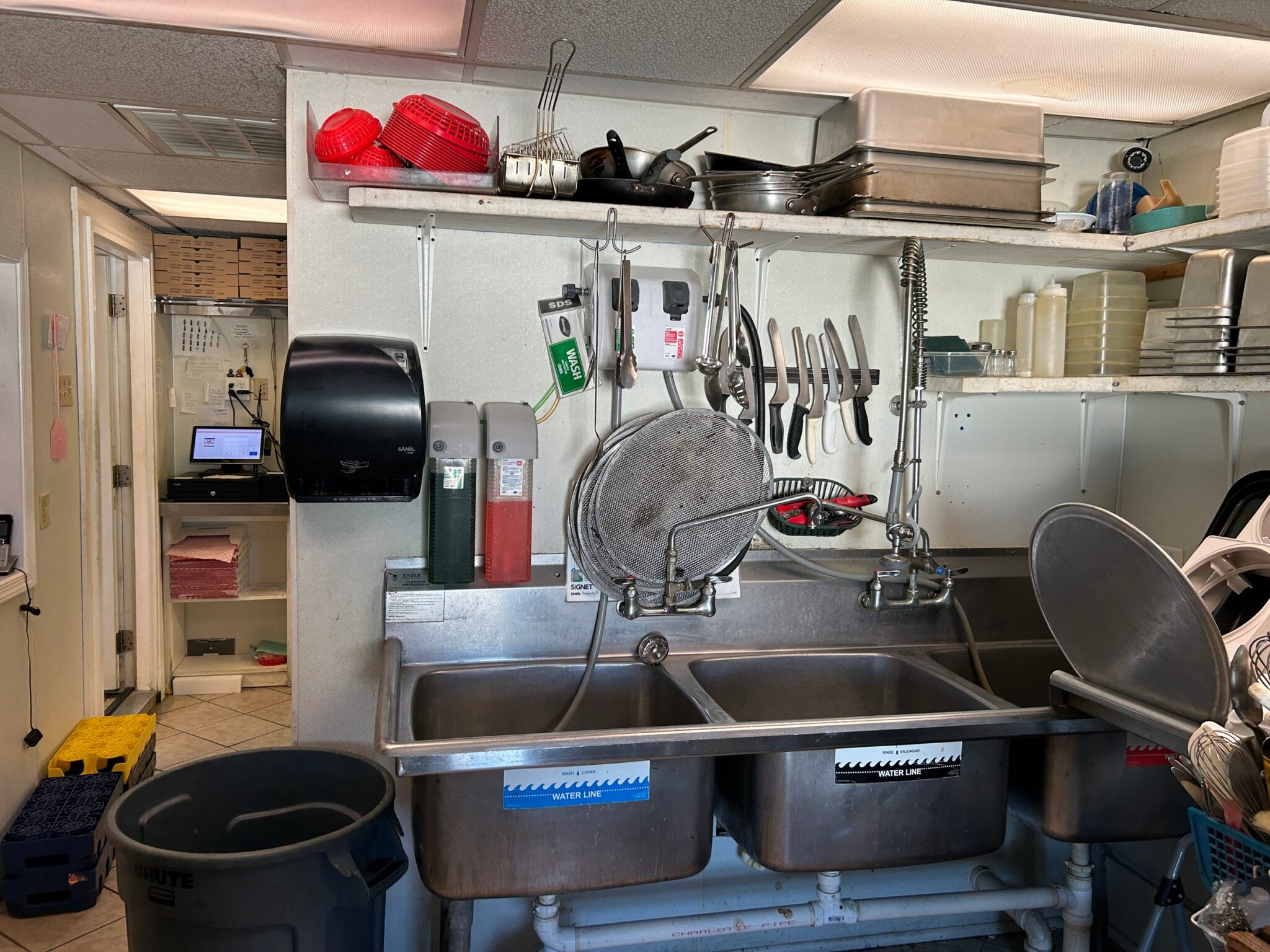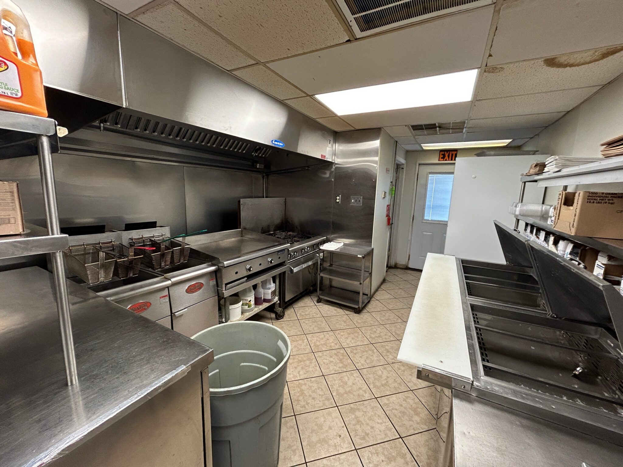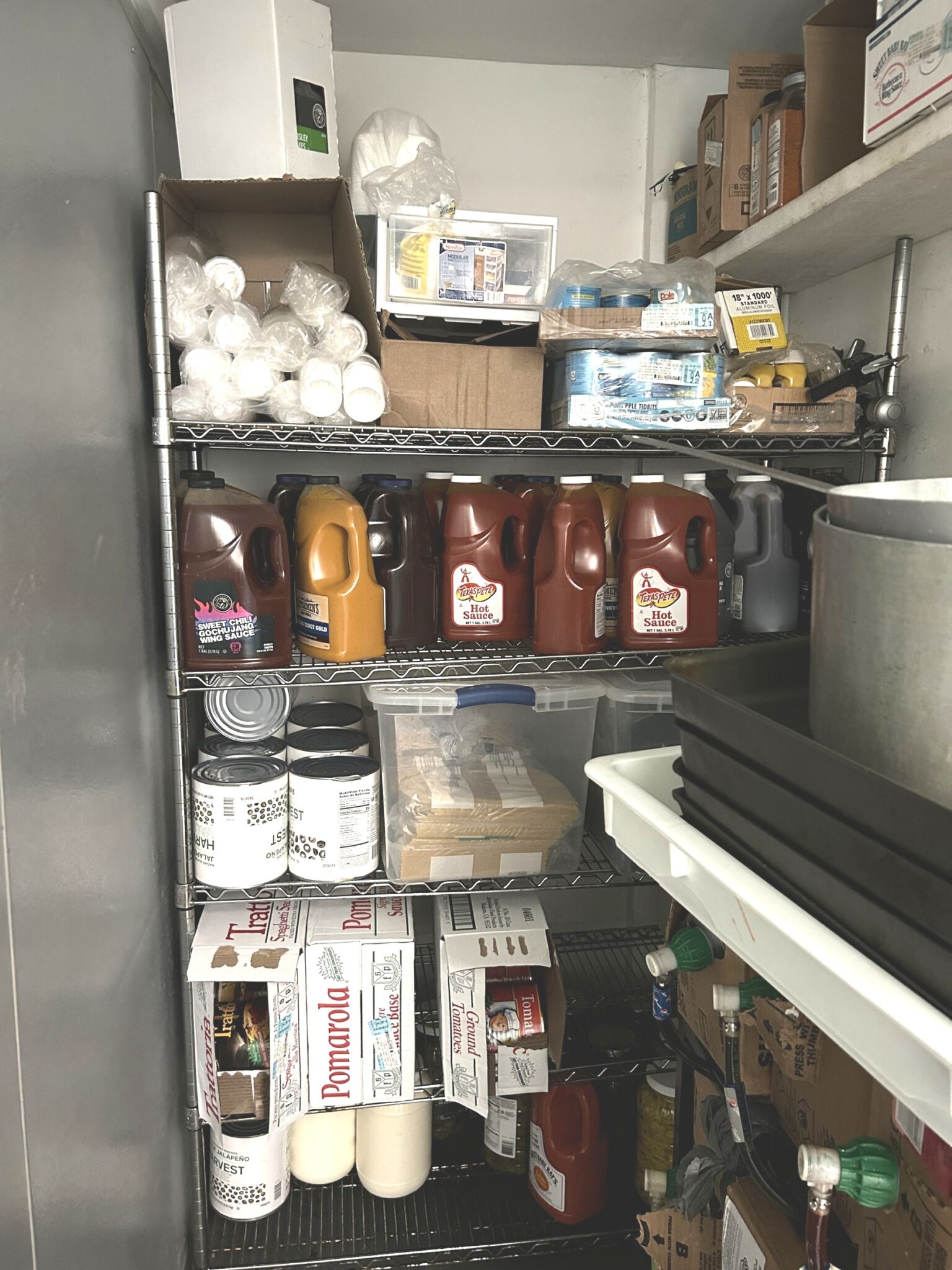 - Storage Closet: – 4’x8’ – Cement Flooring, Fountain Drink Dispenser, Multiple Accessories for the Restaurant.