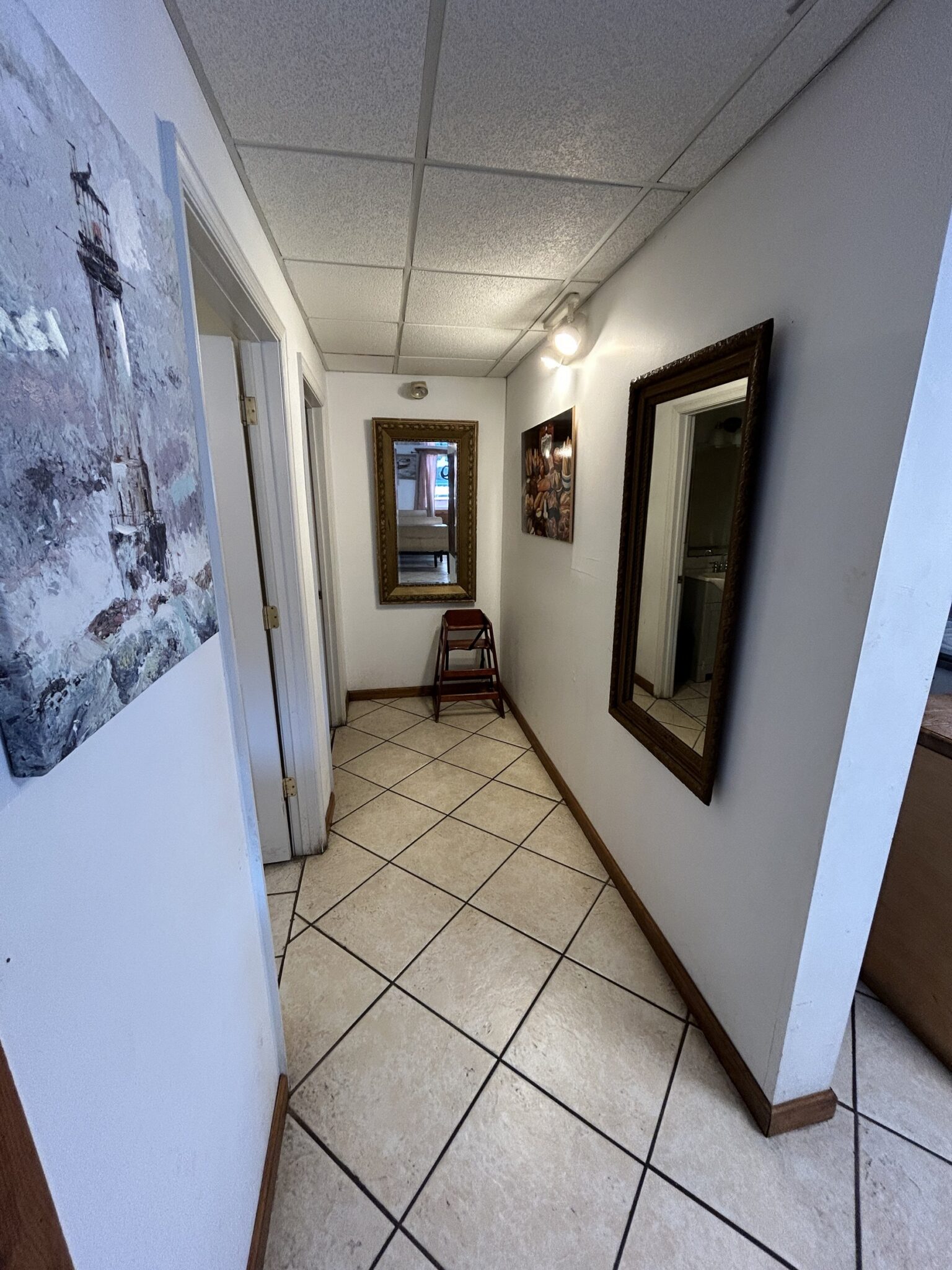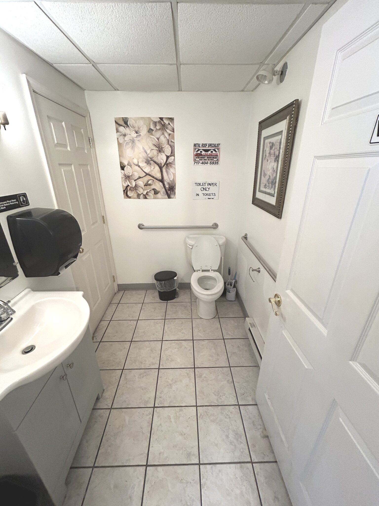 - Women’s Rest Room: 5’x8’ – Tile Flooring, Single Sink Vanity, Storage Closet.