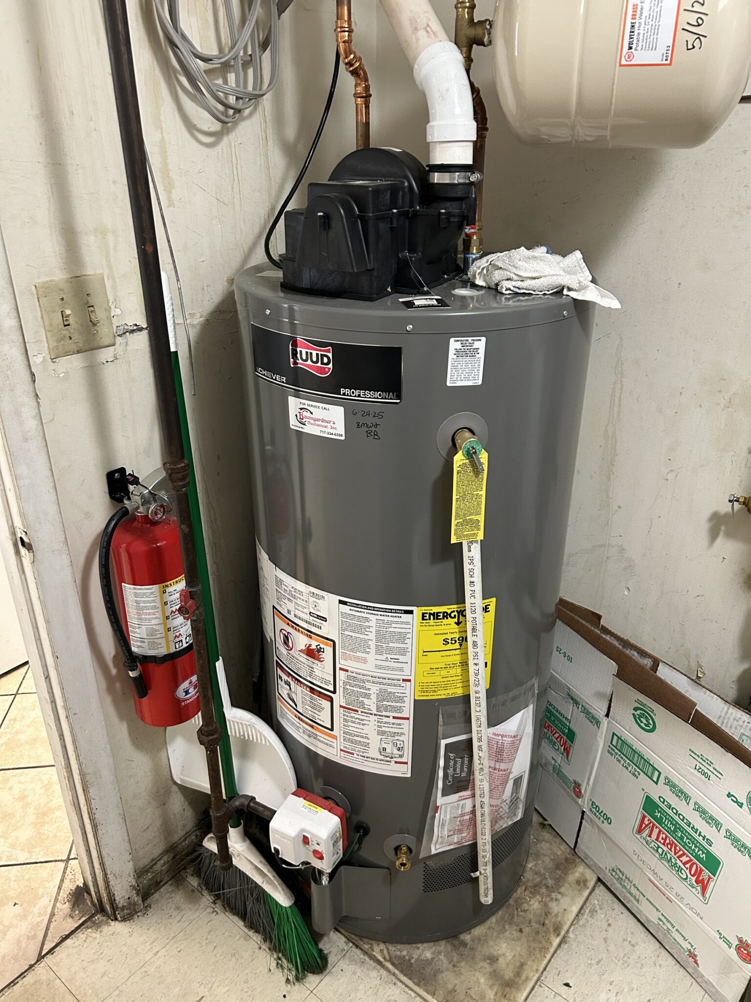 - Mechanical Room: 6’x6’ – Tile Flooring, Toilet, Ruud Hot Water Heater (2025), Soap Dispenser, Fire Suppression System, Built in Shelves.